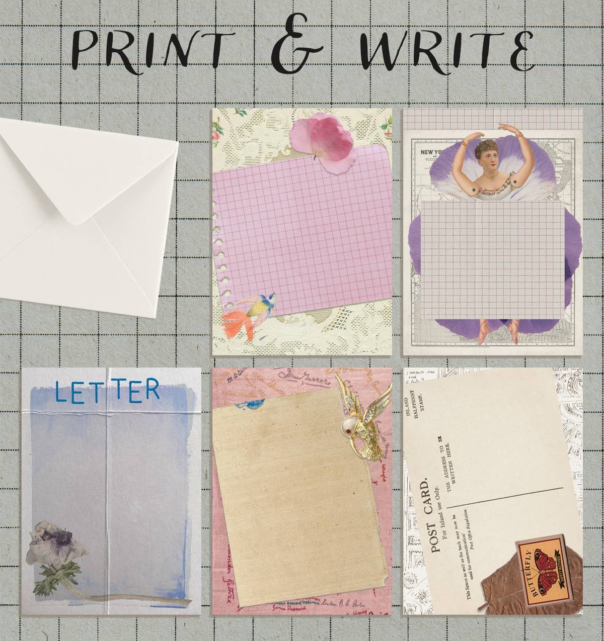 Dive into the snail mail trend with a flair of nostalgia and surprise your pen pall with a handwritten letter on a collage art vintage style paper.